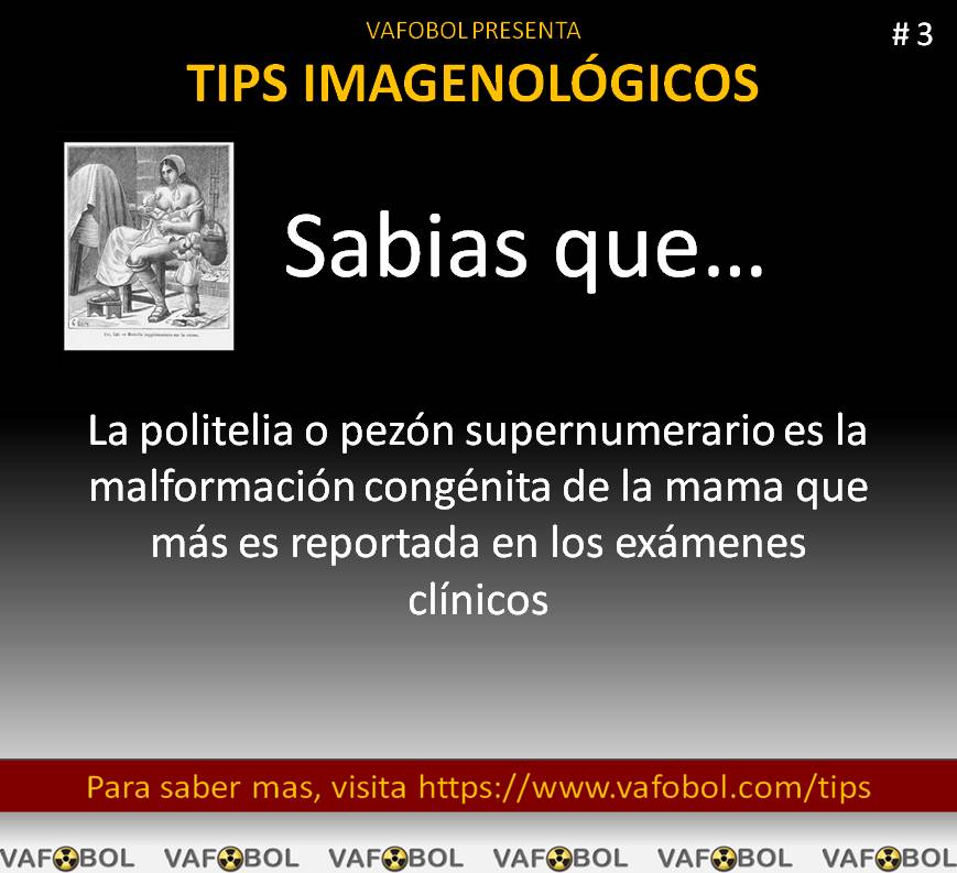 Hay que distinguir politelia (pezón accesorio) de polimastia (mama accesoria). La mama accesoria suele ser torácica, en la línea mamaria y axilar, y sí se asocia a malformaciones renales y torácicas.